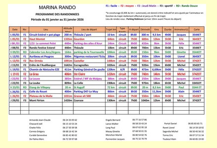 Un ENCART vous indiquera les jours et les horaires ainsi que les randos sélectionnées dans notre calendrier trimestriel.